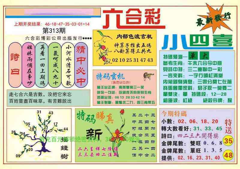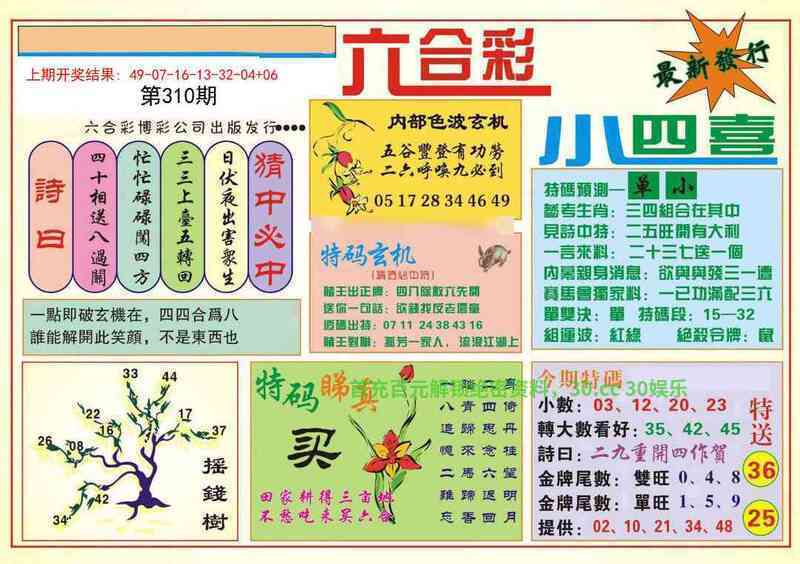 | 314期:【 02.04.05.06.08.10.12.14.16.17.20.23 26.28.31.32.34.36.37.39.40.44.46.48 |