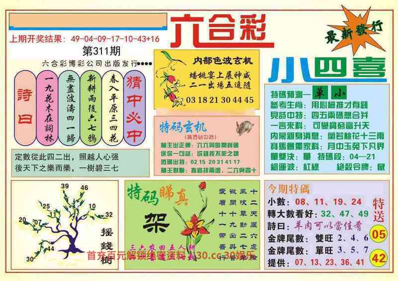 | 314期:男女两肖〖男肖※蛇鸡〗开:羊23错 |